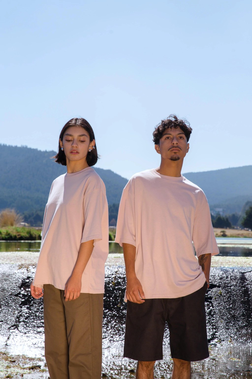 Camiseta corte oversize con mangas amplias con altura al codo.